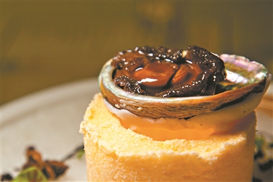 正所谓“秋季第一鲜,鲍鱼正当先”。鲍鱼性温而味甘,可清热滋阴补虚,此时的它也是肉质最肥美鲜嫩的。广州万富希尔顿酒店酌宴府中餐厅掌舵人卢远池师傅为了呈现独特的大连鲜鲍风味,特别找来了木姜子果来配搭。木姜子果是出自云贵地区的山野香料,卢师傅将其搭配酱油等煮成酱汁生焗大连鲜鲍,加热后变得浓稠的酱汁对鲍鱼层层包裹、渗入其中,为鲜鲍鱼赋上干鲍的甘甜风味。上桌时,每一位用粗盐砌出一圈小巧的迷你火炉,烛火继续加热鲍鱼壳上的酱汁和原只鲍鱼肉,令木姜子果油挥发出类似柠檬、罗勒和桂叶混合的芳香,缭绕于鼻尖。尝之口感饱满、甘饴鲜美,齿颊留香。
