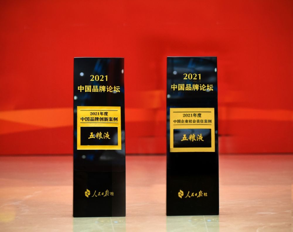 图为五粮液入选2021年度“中国品牌创新案例”“中国企业社会责任案例”
