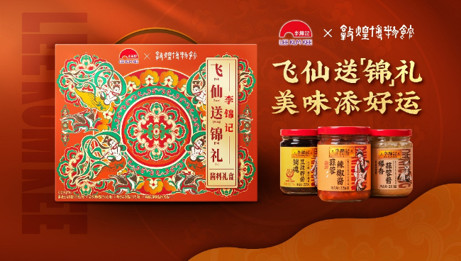 2022年伊始,李锦记携手敦煌博物馆推出“飞仙送锦礼”酱料礼盒,百年酱料品牌和千年文化IP碰撞,解锁“国潮”的全新体验。