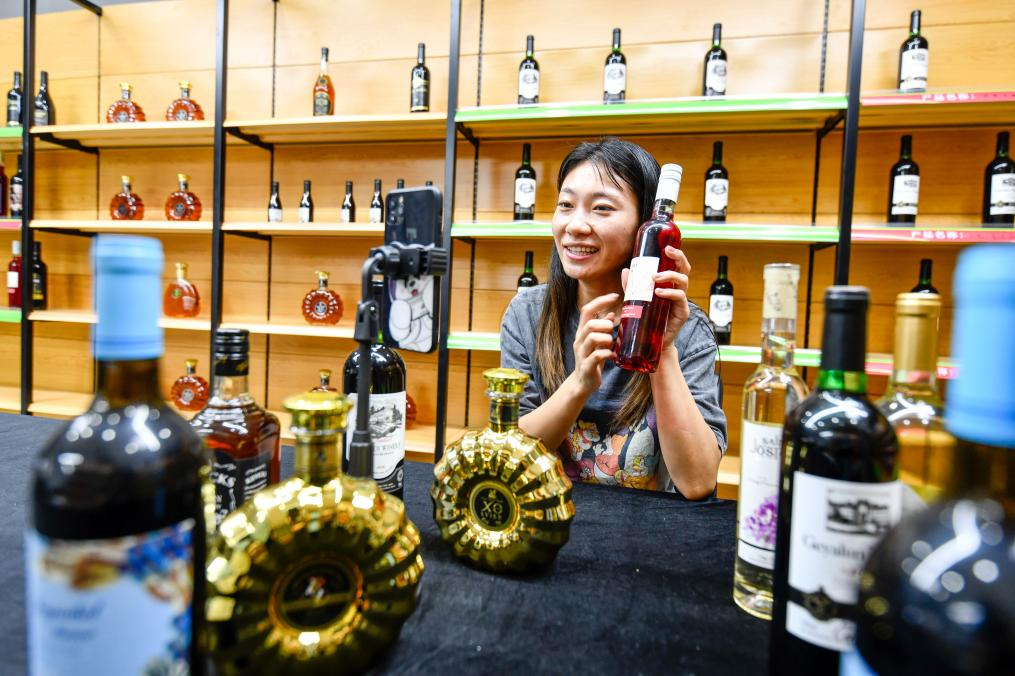 2021年8月26日,河北省玉田县鸦鸿桥镇“聚民惠”电商产业园的主播在利用直播平台推介商品,直播经济“带火”传统“京东第一大集”。新华社记者 牟宇 摄