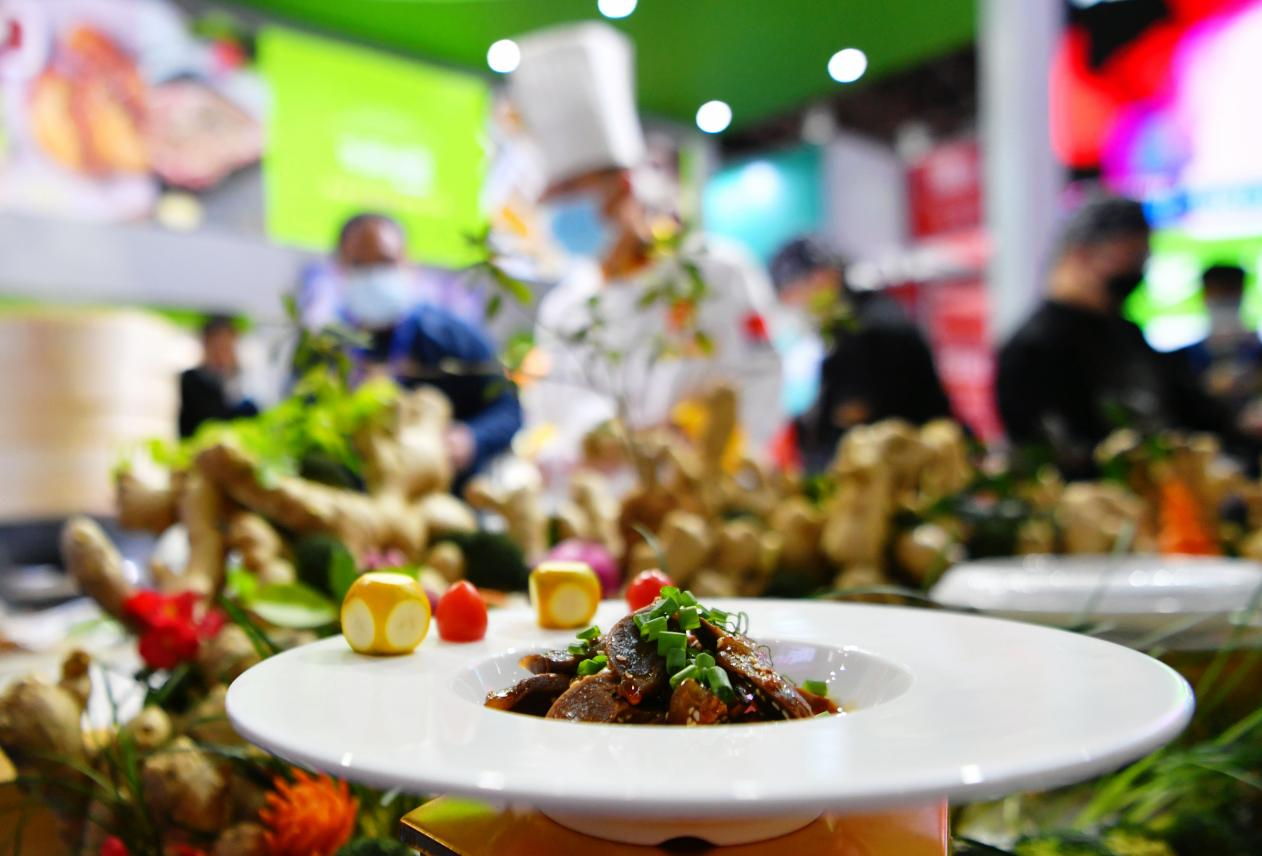 2021年12月2日,在2021中国预制菜产业大会暨展会现场,参展商展示一盘快熟菜品。新华社记者 魏培全 摄