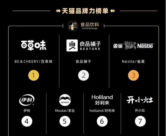 天猫品牌力榜单百草味位列食品饮料行业第一