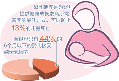 世界卫生组织称,母乳喂养是为婴儿提供健康成长和发育所需营养的最佳方式,可以防止13%的儿童死亡。研究数据显示,在出生后的第一个小时内即开始母乳喂养,然后进行6个月的纯母乳喂养,并持续母乳喂养长达两年或更长时间,可有效防止儿童营养不良。母乳喂养还可以作为婴儿的“天然疫苗”,保护婴儿免于许多常见的儿童疾病,同时还可以降低哺乳母亲未来患糖尿病、肥胖症和某些癌症的风险。尽管有这些好处,但全世界只有44%的6个月以下的婴儿接受纯母乳喂养。在过去的20年中,全球母乳喂养率几乎没有增加,但配方奶粉的销量在几乎同一时间翻了一番还多。