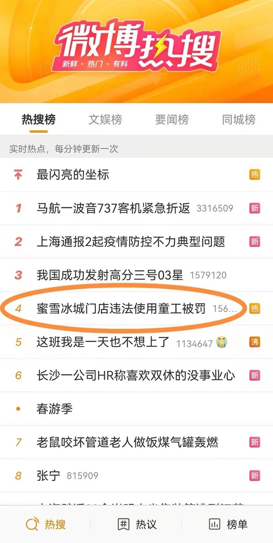 4月7日晚间,“蜜雪冰城门店违法使用童工被罚”冲上微博热搜。