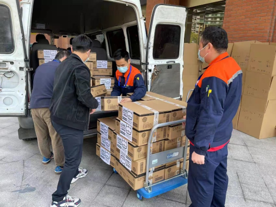 4月6日,妙可蓝多新一批爱心捐赠物资,送抵上海上海市老年医学中心和上海世博展览馆,及时给一线医护人员和社区工作者、志愿书送去营养补充,这已经是该企业向上海捐赠的第三批爱心物资。
