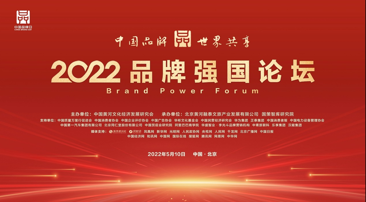 5月10日,在第6个“中国品牌日”到来之际,以“品牌的力量·中国品牌-世界共享”为主题的“2022品牌强国论坛”在北京通过线上方式成功举办。该活动由中国黄河文化经济发展研究会主办,北京黄河融泰文旅产业发展有限公司、国策智库研究院承办,中国质量万里行促进会、中国消费者协会、中国企业评价协会、中国广告协会、华彬文化基金会等单位支持。