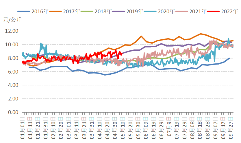 截至5月9日,秭归伦晚脐橙产地收购均价报7.74元/公斤,环比上涨0.47元/公斤,涨幅6.48%;同比上涨3.46元/公斤,涨幅81.11%。秭归夏橙产地收购均价报5.16元/公斤,环比上涨0.96元/公斤,涨幅22.91%。