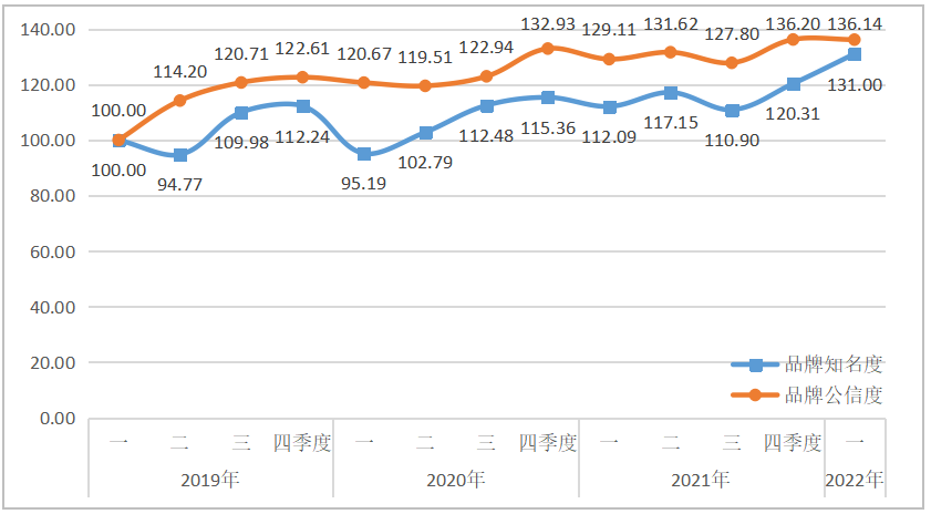 今年一季度,随着西凤酒荣获首届中国名酒70周年庆典的举办,西凤酒的品牌知名度达到近期的最高峰。同时,站在新的发展起点上,西凤从营销创新、品牌管理、项目建设、品质提升、企业管理等方面持续进行改革,助力品牌公信度维持在较高水平。