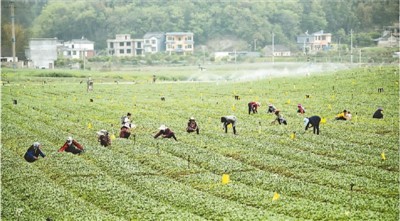“我从一开始就在松花菜基地里面上班,一天有80块钱。”基地务工人员杨贤义说,村里种植的松花菜长势好、不愁卖,收入有保障。而且种植基地就在村旁,还能随时回去照顾家里,非常方便。