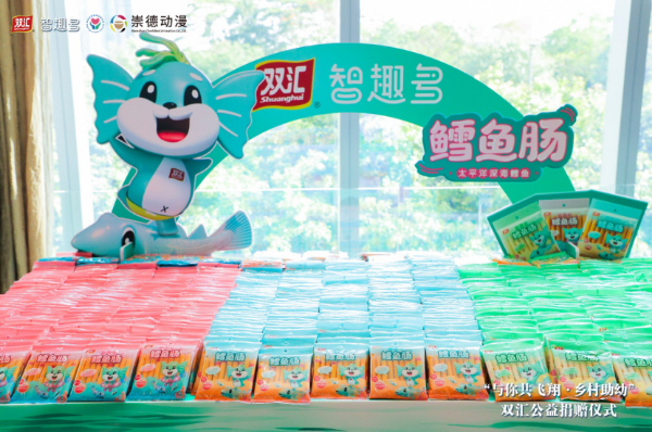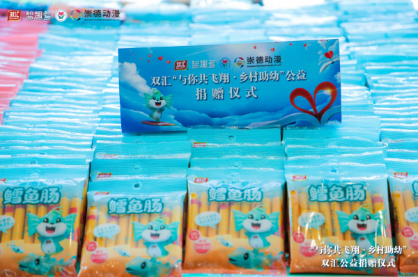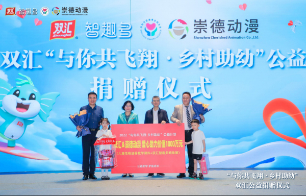 百年大计,教育为本。儿童教育事关家庭未来、国家希望和民族复兴大业,双汇作为本次“与你共飞翔 乡村助幼”公益计划的发起人之一,旨在用公益力量支持欠发达地区幼儿教育,提升留守儿童的科学保教质量,引导社会关注儿童性格养成,重视决定人生的0-7岁教育关键期。本次公益活动,双汇联合崇德动漫向欠发达地区幼儿园捐赠了价值1000万元的公益礼包,包含了玩教具、儿童绘本、儿童性格涵养教学方案、培训服务及双汇儿童产品智趣多鳕鱼肠,助力当地儿童教育,为儿童健康成长护航。双汇发展营销公关副总裁周霄、深圳崇德动漫董事长赵先德作为捐赠企业代表出席捐赠仪式。