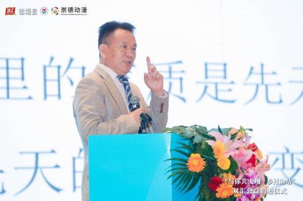 5月29日,由双汇、崇德动漫联合发起的“与你共飞翔•乡村助幼”公益捐赠仪式暨中外家庭教育专家“性格养正教育”分享会在深圳福田香格里拉大酒店举行。该活动由深圳市慈善联合会指导,深圳市慈善联合会未成年人专业委员会、河南双汇投资发展股份有限公司、深圳崇德动漫股份有限公司联合主办,深圳市乐学乐园儿童性格养正研究中心承办。活动现场,双汇联合崇德动漫捐赠包括玩教具、教师培训服务、双汇智趣多鳕鱼肠产品在内的价值1000万元的公益礼包,用以支持欠发达地区学前教育发展,提升留守儿童的科学保教质量。