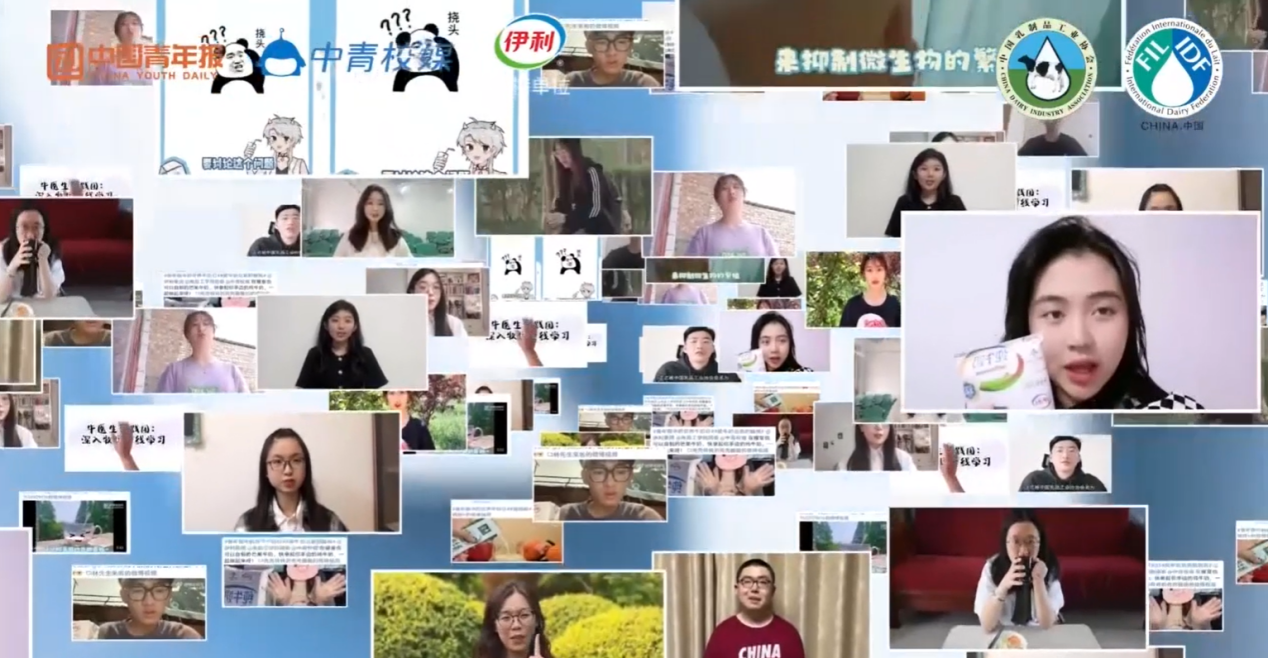 来自大连外国语大学的张陈辰制作了漫画视频,将“空腹能不能喝牛奶”“牛奶能否替代水饮用”等小知识,通过漫画人物形象娓娓道来;中国传媒大学的高子涵分享了自己用伊利臻浓牛奶制作牛奶蒸饭和营养早餐粥的方法,不仅吃出了花样,更吃出了健康;北京信息科技大学的胡珺山讲述他第一次化身“大白”的故事,在参加社区疫情防控志愿服务工作过程中,他每天早上都收到“爱心牛奶”,开启元气满满的一天。