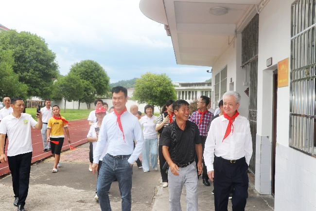 相隔多年再次回访,相比当年仅有的砖瓦教室,如今学校已建成教学楼、功能楼、塑胶跑道、篮球场、足球场……处处焕发着新时代的红色光芒,古润金内心的喜悦难以言表,正所谓“千里来寻故地,旧貌变新颜”!