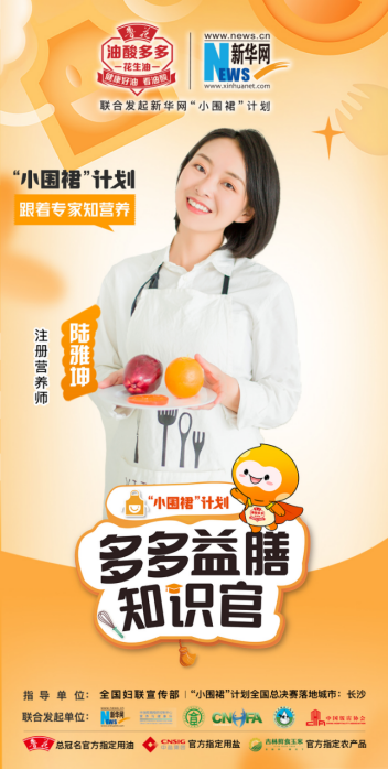 大手拉小手,一起来做饭。小朋友们,你们准备好了吗?快来加入由新华网联合相关协会组织、企业等共同发起,“健康好油看油酸”鲁花油酸多多花生油总冠名的2022暑期儿童食育助家启蒙大型公益活动——新华网“小围裙”计划,穿上小围裙,跟着专家们一起学营养啦!