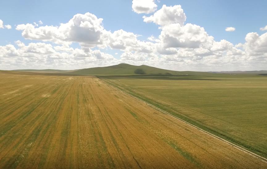 在蒙北燕麦种植基地,放眼望去,是一望无际的金色麦田。一阵风吹来,成熟的麦田似金狮起舞,麦浪翻滚,一波推动一波,空气中弥漫着燕麦成熟的清香,成熟美景近在眼前。