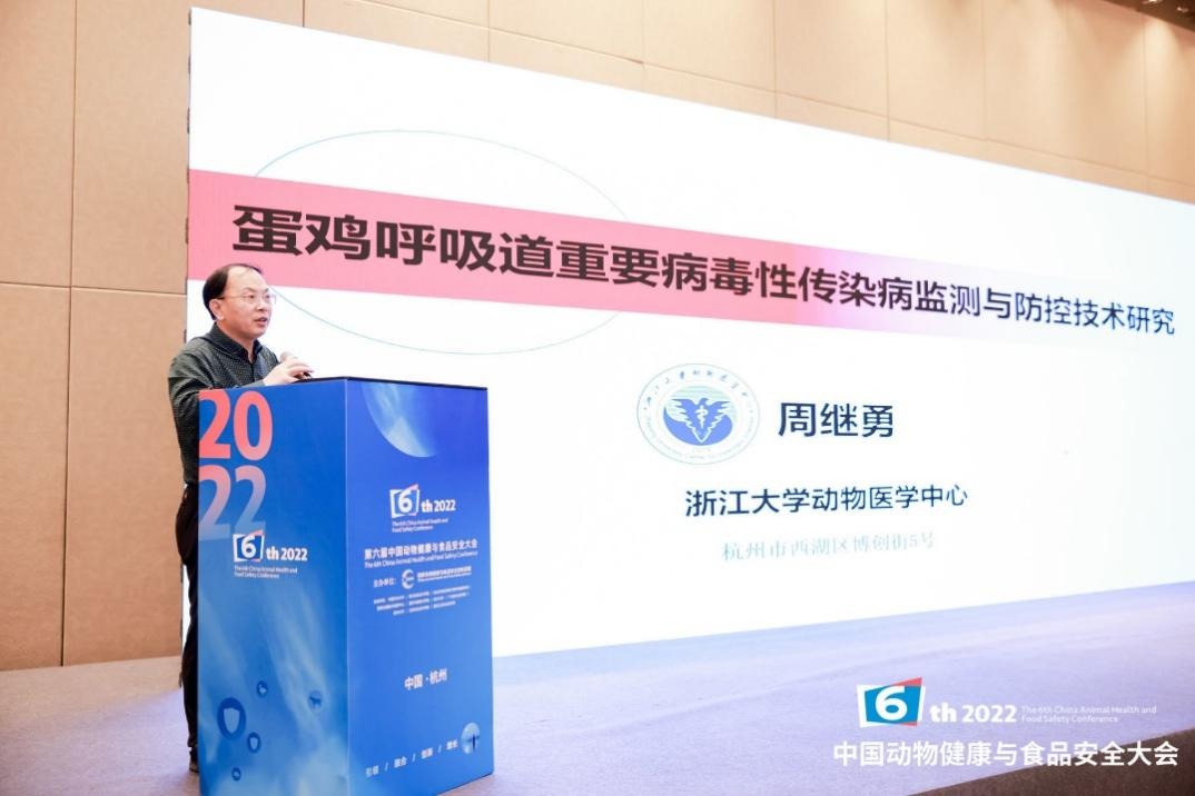 浙江大学动物医学中心主任周继勇分享了《蛋鸡呼吸道重要病毒传染病监测与防控技术研究》。