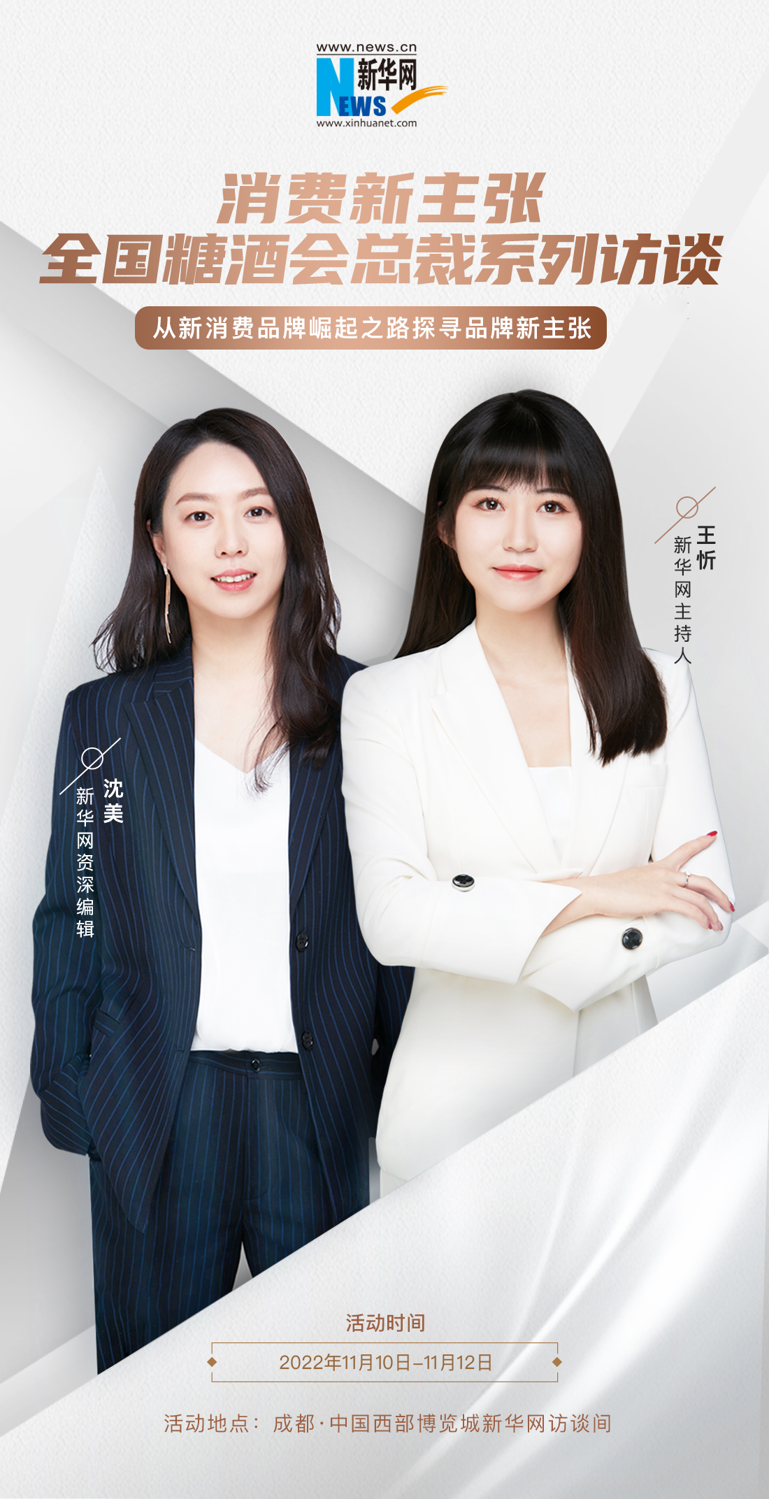 越来越多的市场规则说明,年轻化才是品牌发展的王道。但是如何俯下身来倾听消费者,发现他们的需求,解决他们的痛点,以年轻人喜欢的方式打造品牌,任何一个品类都值得重新思考………因为新消费仍然是未来的大趋势。此次糖酒会期间,在全国糖酒会组委会指导下,新华网将举办《消费新主张·全国糖酒会总裁系列访谈》,邀请相关协会、企业负责人分享对于新消费未来发展的真知灼见,携手中国食品产业走进新阶段,让世界倾听中国声音 。