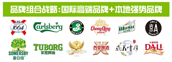 重庆啤酒的高端化是以“本地强势品牌+国际高端品牌”的品牌组合作为基础,其中,国际品牌有嘉士伯、乐堡、1664、格林堡、布鲁克林、夏日纷等,本地品牌有乌苏、重庆、山城、西夏、大理、风花雪月、京A等。