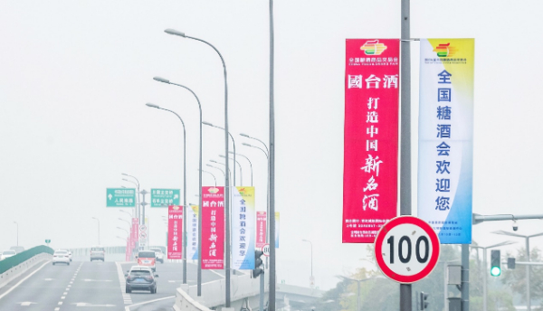 从外省来参加糖酒会的客商,在抵达成都的第一时间,就能看到国台的广告。而从机场到会馆沿途,200多面道旗彰显着国台打造中国新名酒的发展愿景。在主会场外,巨型拱门和户外广告让人还没进场馆,就已经感受到国台的品牌氛围。