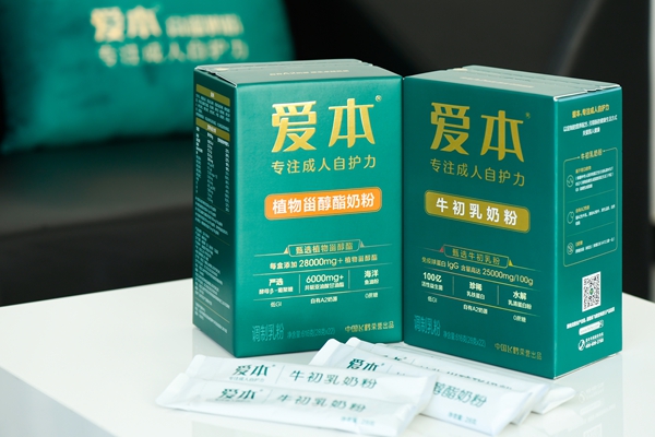 “另一款‘爱本植物甾醇酯奶粉’同样是‘顶配’配方,添加了植物甾醇酯,共轭亚油酸甘油酯、深海鱼油粉和酵母β-葡聚糖,这些国际公认的对心脑血管功效明确的物质,共同组成了心脑自护力集成营养,可以守护我们的心脑健康。”张永久说:“两款产品研发出来后,联合第三方权威机构进行了功效验证,结果表明:爱本牛初乳奶粉‘具有增强免疫力功能作用’;爱本植物甾醇酯奶粉‘能显著降低低密度脂蛋白胆固醇’、‘对血脂代谢具有调控作用’。”