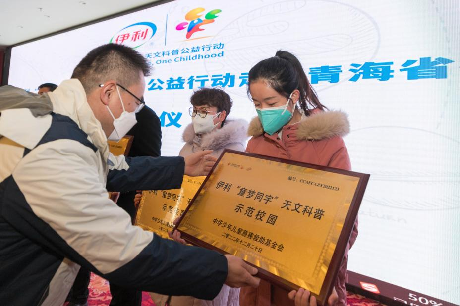 伊利“童梦同宇”公益项目为德令哈市的天文科普示范校园进行授牌