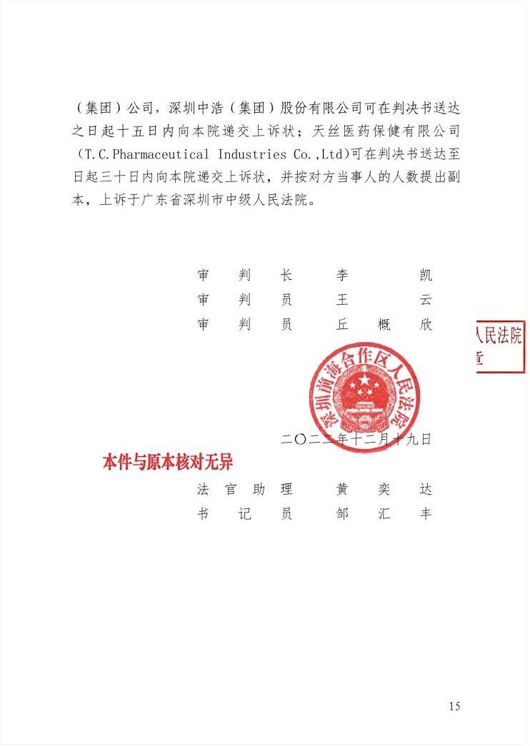 12月29日,红牛维他命饮料有限公司(下称“中国红牛”或“我司”)收到广东省深圳前海合作区人民法院民事判决书((2019)粤 0391 民初725 号,下称“判决书”),支持了我司的全部诉讼请求,判项全文如下: