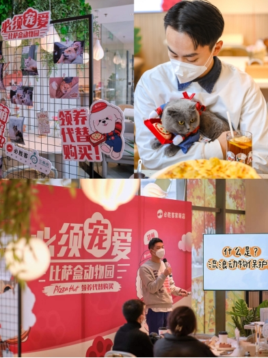 必胜客宠物友好餐厅为养宠消费者提供交流分享平台的同时,也开展“以领养代替购买”线下领养及云领养活动,不仅致力于为流浪动物寻找一个温暖的“家”,也为爱护动物人士提供一个有爱互助的平台,让他们能够更及时地关注到流浪动物的消息,帮助更多流浪动物找到温暖的家。除此之外,必胜客还在餐厅内举办公益摄影展,以关爱流浪动物为创作方向,寄托了对流浪小动物的关爱与祝福,以此唤起大众对流浪动物的关注与爱护,倡导更多人尊重生命,与爱护动物人士一起传递温暖与爱。