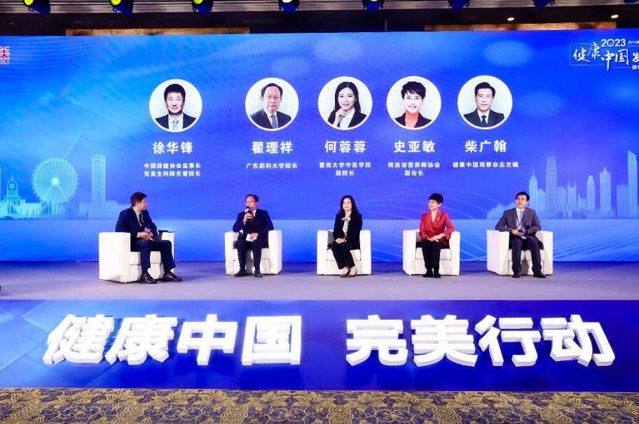 在大会上,由中国保健协会监事长、完美生科院名誉院长徐华锋主持的《科学管理 健康生活》主题圆桌对话环节顺利举行,广东药科大学校长翟理祥、暨南大学中医学院副院长何蓉蓉、陕西省营养师协会副会长史亚敏、健康中国观察杂志主编柴广翰结合自身专业领域与实际工作,围绕健康生活、健康管理和如何通过健康科普提升国民健康素养、企业在健康中国战略推进中的重要角色与作用展开了热烈讨论。