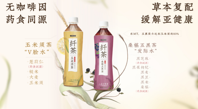 纤茶系列此前已有主力产品玉米须茶和桑椹五黑茶,此次发布的概念新品十全茶灵感则来源于中国古代的“十全饮”。“十全饮”的配方最早出现在宋代,此后一直被历代宫廷医官沿用,被认为有养气育神、温暖脾肾的功效。