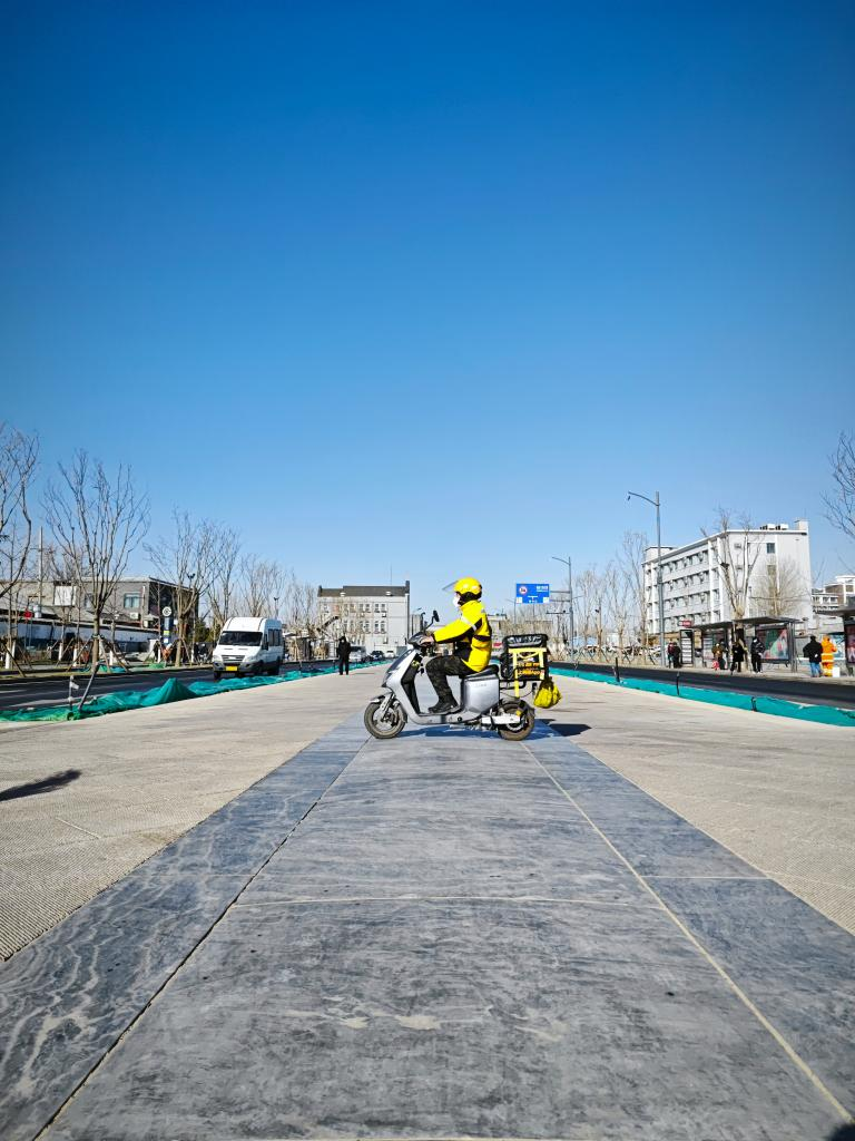 1月28日,外卖小哥苗文攀在配送途中。新华社记者 陈旭 摄