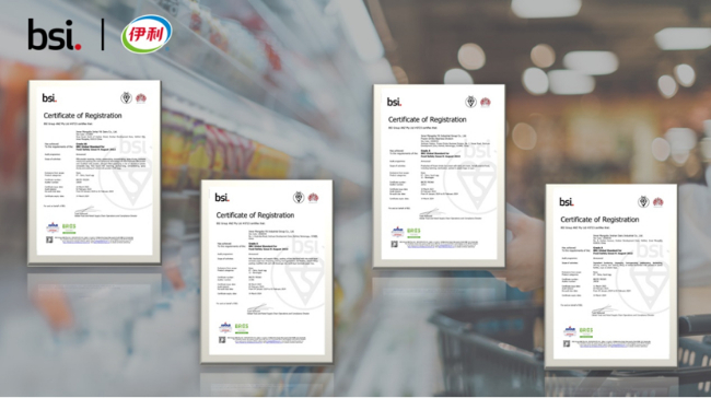 英国标准协会(BSI)官网公示伊利荣获首张BRCGS全球食品安全标准第9版认证证书