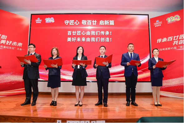 4月10日,青岛啤酒以“传承百廿匠心 共创美好未来”为主题,举行第45届“提高质量纪念日”大会。青岛啤酒在成立120周年之际,以一场守正创新的纪念活动,进一步推动质量强企做深做实,持续增强企业质量竞争力和百廿品牌发展能力,推动企业高质量发展。