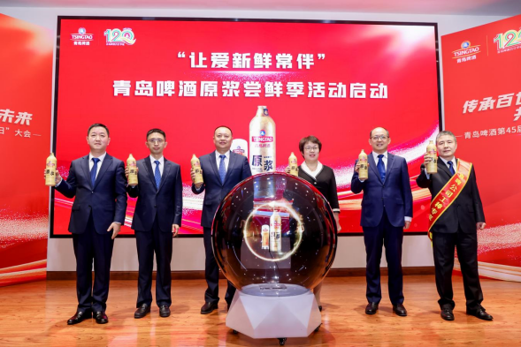 质量月活动上,青岛啤酒启动了“让爱新鲜常伴”青岛啤酒原浆尝鲜季活动。