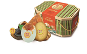 金婚象征着情如金坚,白头偕老。金蛋寓意着吉祥、好运。馅料有红枣、花生、桂圆、莲子,寓意早生贵子。