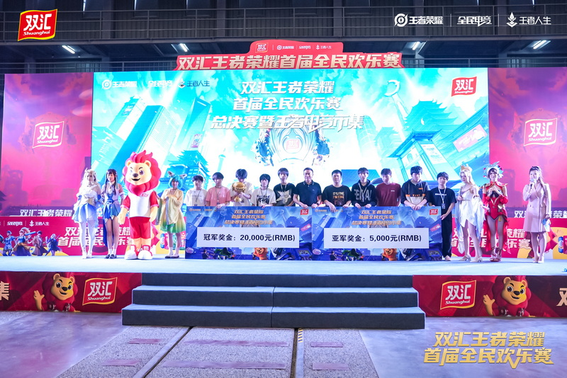 周霄为最终获胜的冠军队伍颁发“双汇王者”奖杯,冠军队伍获得奖金人民币2万元并获赠双汇王中王产品。