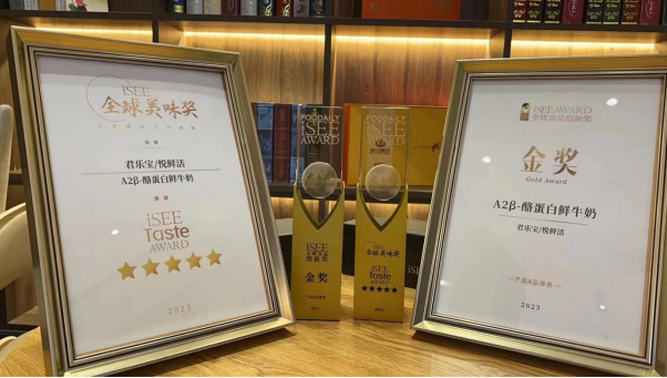 5月14日,第五届iSEE全球食品创新奖颁奖典礼在上海举行。君乐宝旗下悦鲜活A2β-酪蛋白鲜牛奶凭借创新工艺、香醇口感、鲜活营养等优势,从千款参赛产品中脱颖而出,斩获大会两项最高级别奖项——“全球食品创新奖-产品&品牌类金奖”和“全球美味奖五星奖”。