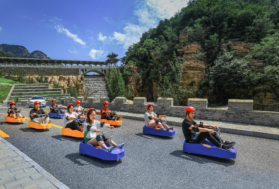 活动当天,市民们首先来到平谷区梨树沟休闲谷。梨树沟休闲谷坐落于北京市东郊的平谷区梨树沟村,距北京城区100公里。地处燕山山脉南麓,总面积9.16平方公里。这里群山环抱,绿水相映,最高峰海拔超过一千米,森林覆盖率高达85%。立足优秀的生态、文化资源,梨树沟休闲谷坚持村企联建,开发了一批山地滑车、梯田景观、夜游、夜滑、灯光秀等特色休闲体验产品,吸引了大批市民前来体验打卡。