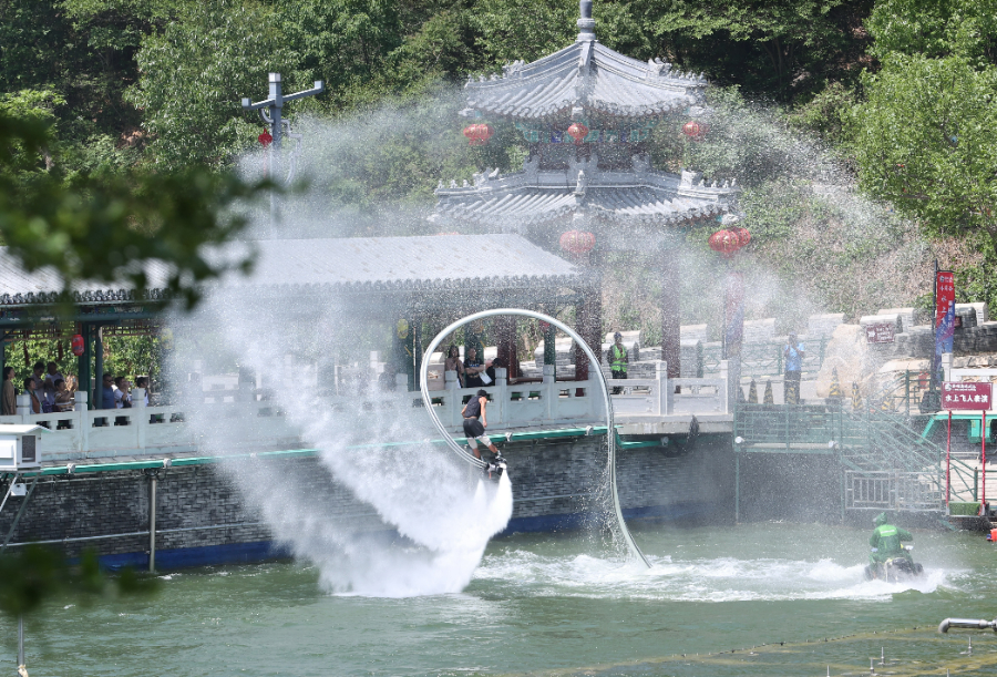 最让人震撼的是欣赏休闲谷精心打造的水秀嘉年华,优美的音乐响起,万股喷泉拔地而起,在山间变化群舞,极为壮观。据说,到了晚上,休闲谷在沿途环绕布置了近万米的夜间彩色灯带,水舞灯光秀利用现代舞美技术,结合音乐、喷泉、灯光、激光、投影等元素,推出大型实景水秀《平谷夜话》,让传统与时尚交融、远古传说与现代科技碰撞,呈现一场精彩绝伦的光影盛宴。