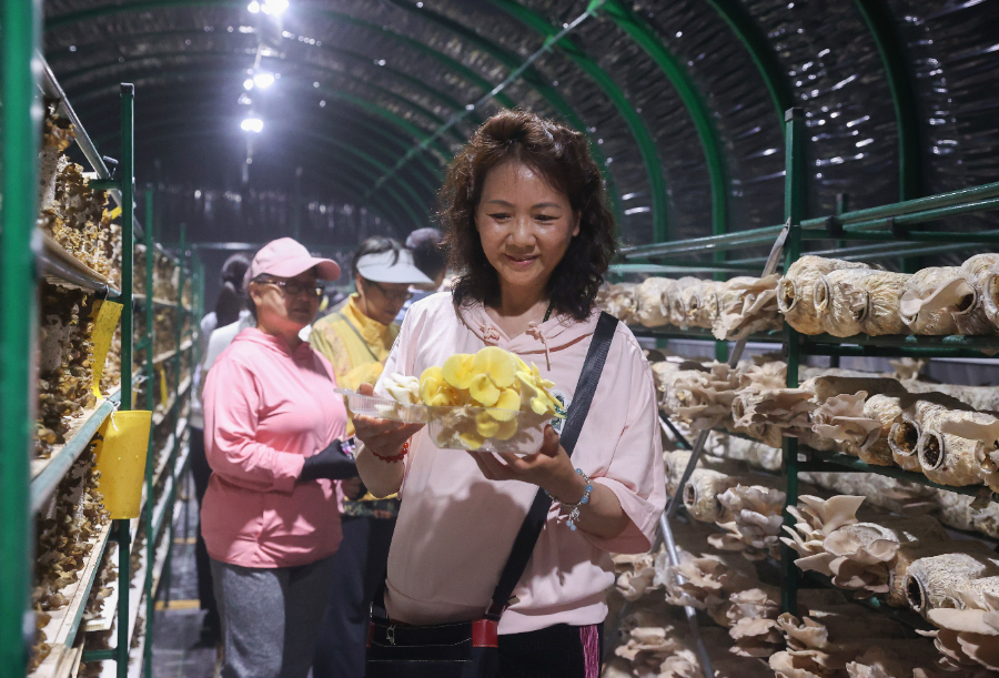 走出画卷,市民们来到平谷塔洼食用菌种植基地,参观了解食用菌种植技术及产业发展。塔洼村食用菌种植基地坐落在黄松峪乡塔洼村,以种植多种食用菌为主,品种有金针菇、猪肚菇、茶树菇、香菇、木耳等十几种食用菌。