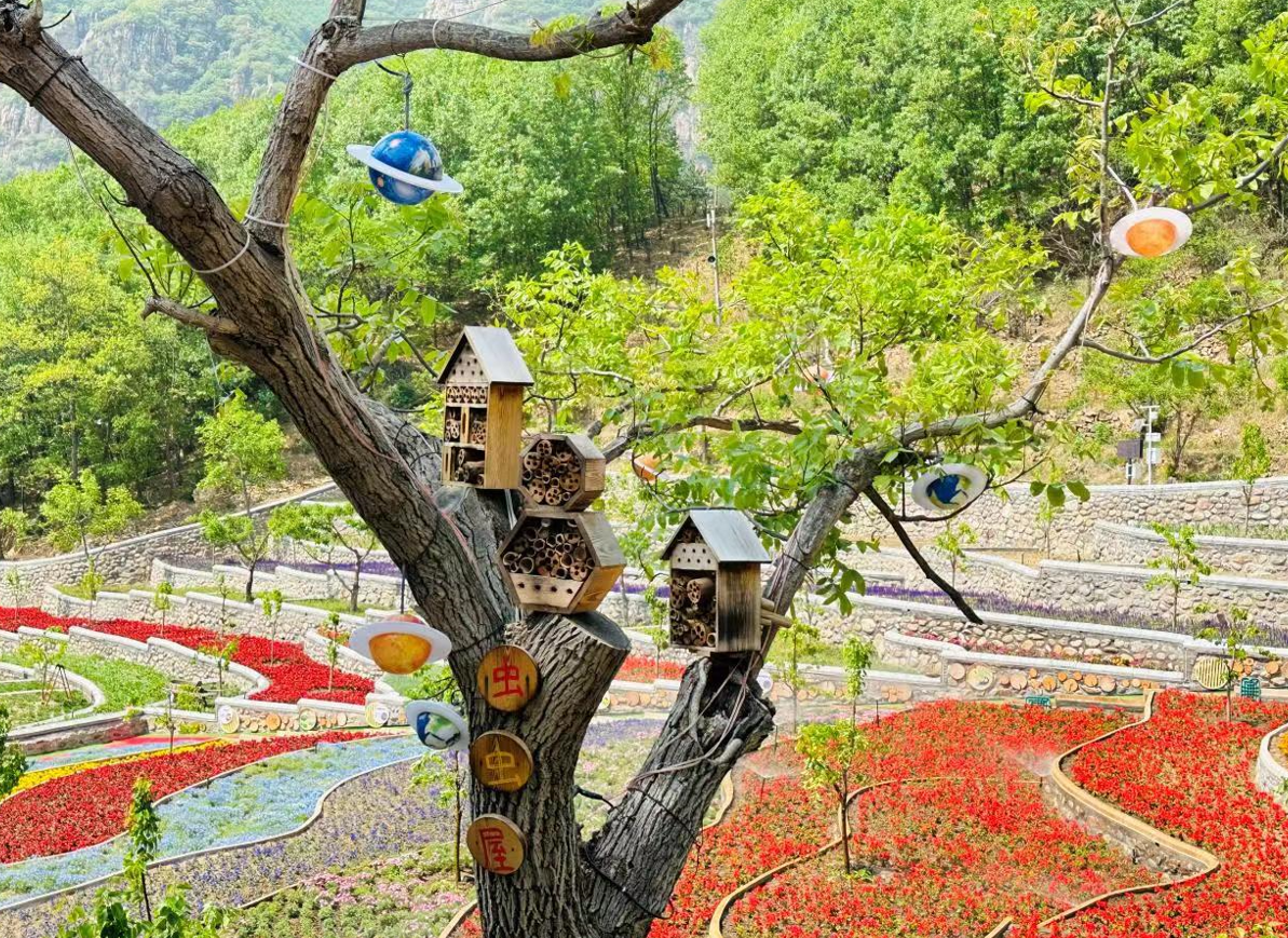 据介绍,梨树沟山坡水土流失严重。为持续改善生态环境,推进美丽乡村建设,休闲谷在山坡台阶进行修整和绿化,改造成为占地面积两万余平方米的花海梯田景观,并起到了防洪、保土、涵养水源的作用,播种了有观赏和药用价值的荆芥、马鞭草、金光菊、四季海棠等几十种花卉。