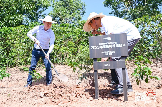 在第23个国际生物多样性日当天,雀巢咖啡在云南普洱启动了新一轮荫蔽树种植活动,此举标志着雀巢咖啡2030计划继2022年10月全球启动后在中国本土的正式落地,同时也是雀巢“全球再造林计划”的进一步贯彻和推进。雀巢在云南持续推动咖啡种植向再生农业转型,2023年将在云南种植和培育20万棵树,以可持续的方式赋能云南咖啡产业焕新升级,让“绿色”和“可持续发展”成为云南咖啡的新标签。