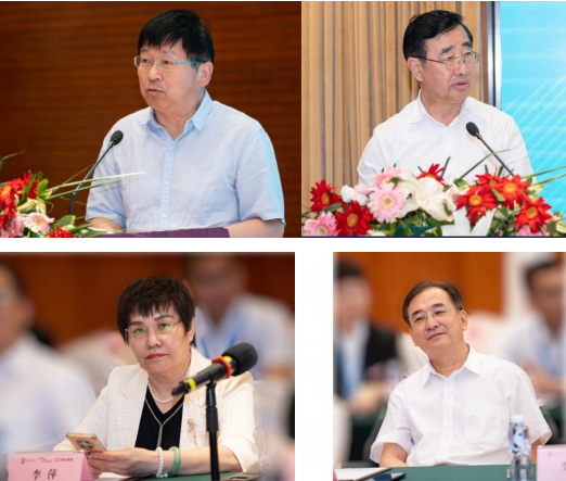 中国保健协会理事长汪建荣讲话(左上),副理事长兼秘书长张志强主持(右上),副理事长李萍(左下)、王中(右下)出席发布会。