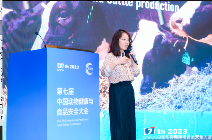 礼蓝动保中国反刍市场经理刘英霞以《温室气体排放和牛业生产》为题进行了分享,她分析了影响奶牛温室气体减排的关键领域,包括饲料生产减少排放,增加土壤固碳,直接或间接抑制胃肠道甲烷排放以及粪污排放+能源再生等,促进了学科内信息互通,拓展了学科前沿信息边界。
