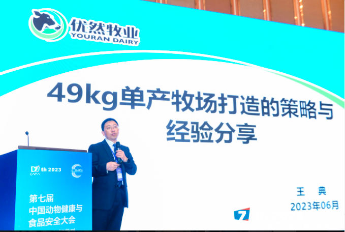 内蒙古优然牧业有限责任公司总监王典在本次论坛分享了《49kg单产牧场打造的策略与经验分享》,首先他提出了奶牛营养设计理念,要注重干奶和围产期营养与管理,围产期和新产期可以提高维生素用量,增加有机微量元素使用等,他详细举例说明了牧场打造的新型策略,让在场的专家和奶牛界朋友耳目一新。