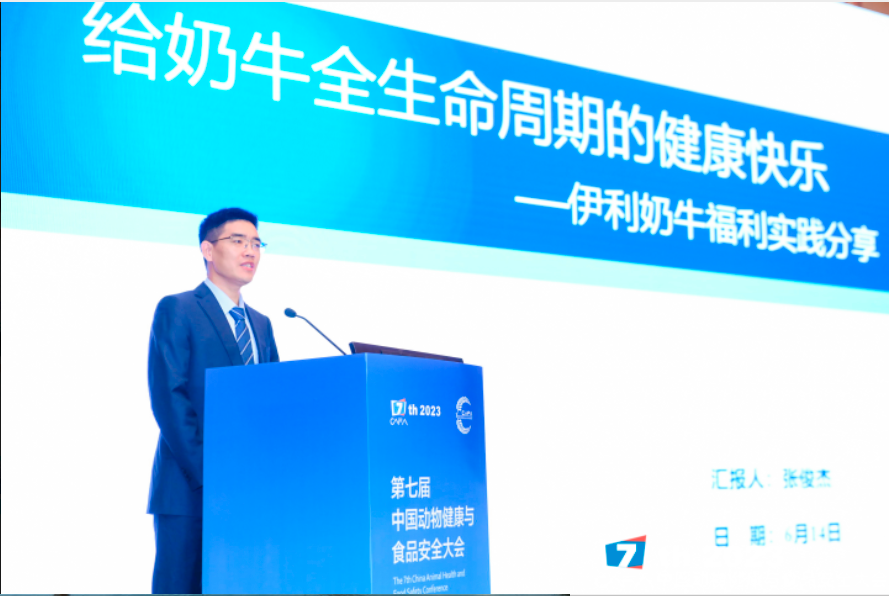 伊利集团奶牛科学研究中心副主任张俊杰分享了《给奶牛全生命周期的健康快乐》,分别从奶牛福利-伊利标准、奶牛福利-伊利推广经验,改善奶牛福利,提升牛群健康三个方面进行了详细讲解,奶牛福利指的是在全生命周期中关注奶牛的健康快乐,包含生理福利、环境福利、健康福利、行为福利和心理福利。张主任说到要养好牛,就得做到牛走-粪清-料到-床平-水满。并且他介绍到他们的专业团队:奶牛科学研究院在此方面做了很多的工作来保障动物福利。最后他再次呼吁我们要注重奶牛的全生命周期的健康快乐。