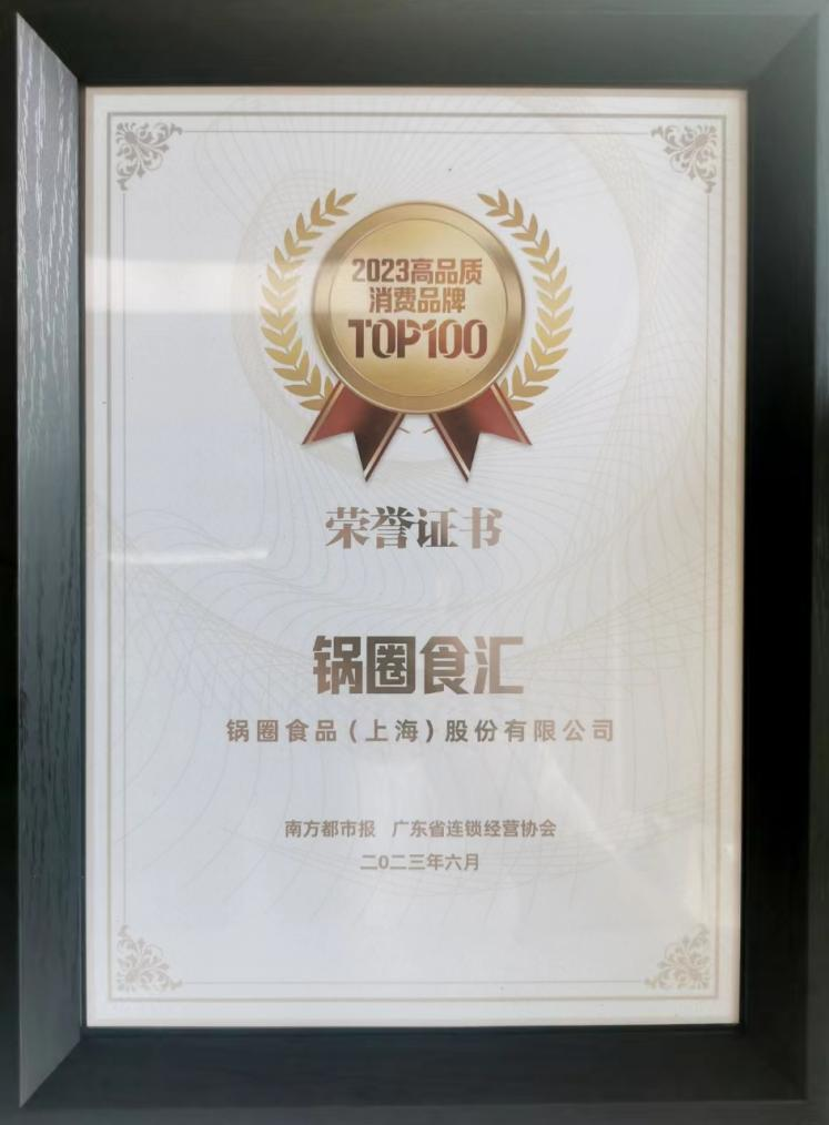 据悉,2023高品质消费品牌TOP100由南方都市报联合广东省连锁经营协会共同发布,榜单聚焦大健康/食品快消、户外出行、新零售、新文创、时尚生活、预制菜等六大赛道的消费创新趋势和需求变化,从创新能力、品牌建设能力、可持续发展能力,最终综合评定完成。锅圈食汇凭借其优质的食材产品品质,以及近年来在国内积累的良好口碑和广泛的品牌影响力入围榜单。