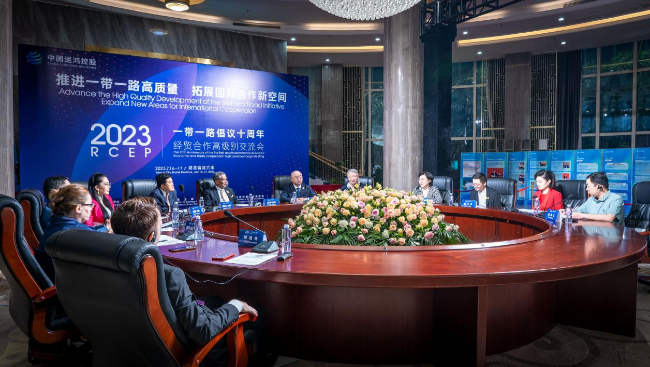 “‘一带一路’倡议10周年——2023 RCEP经贸合作高级别交流会”在湖北省武穴市运鸿大健康产业园召开。来自5个国家、国际组织、科研机构的代表齐聚一堂,围绕“推进‘一带一路’高质量 拓展国际合作新空间”主题展开深入交流。
