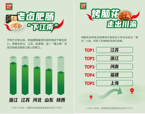 此外,《报告》还披露了一些“争议”食物的趋势。如,不同于日常认知,老卤肥肠最受欢迎的地区不是在川渝,而是在浙江、江苏,可见这一“重口味”活宝已经成功拿捏江南人的胃口。
