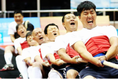 一次在看体育节目的时候,侯宝成被电视中一场拔河比赛深深吸引,不自觉的跟着比赛队伍攥紧了拳头,这时他脑中灵光闪过——组建拔河队。“拔河是一种对团结性、协作性要求很高的项目,而且投入少,如果不成也没什么损失”,就这样,一支由侯宝成担任教练,由本村村民组成,平均年龄40多岁的拔河队成立了,他们白天务农,晚上训练。侯宝成在训练队员的同时也逐渐化解了大家对新班子的疑虑,赢得了信任。2013年9月,南口镇举办了一次运动会,居庸关村拔河队一举夺得全镇拔河比赛冠军,这成功地激发了全体队员和广大村民的集体荣誉感,村民对拔河队的态度也从一开始的观望到后来的踊跃参与。“村子里以前有邻里不和的,沉迷打牌等矛盾和问题,组建拔河队后,在大家一起训练的过程中就自然而然的解决了。”说起村子的变化,侯宝成滔滔不绝。拔河队将村子的士气凝聚了起来,将村民的心团结了起来,形成了“撸起袖子、扑下身子、齐心协力、拼搏奋斗”的“一根绳”精神,这也成为了居庸关村未来发展的支点。