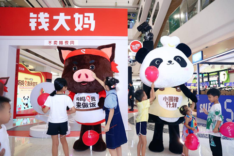 8月13日,由钱大妈联合新华网、万达广场共同发起的“妈妈Q我来做饭”快闪活动正式在广州市海珠区万达广场亮相。人气IP玩偶小猪黑毛和熊猫能能的巡游让小朋友们欢呼不断,热烈的氛围吸引更多观众驻足参与。